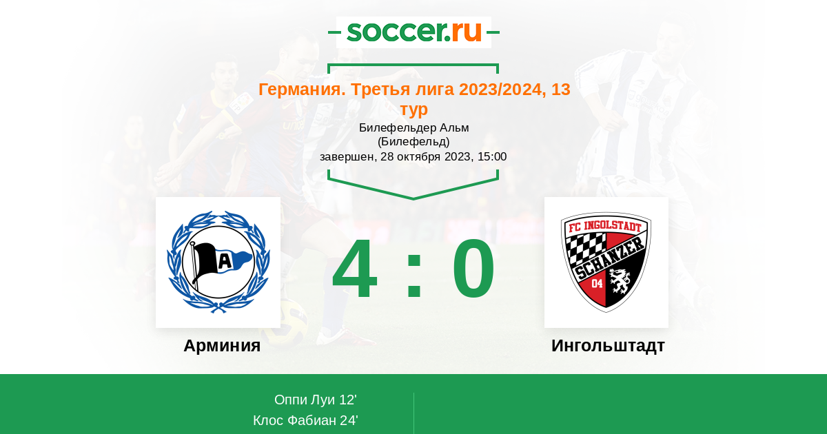 Протокол матча Арминия против Ингольштадт