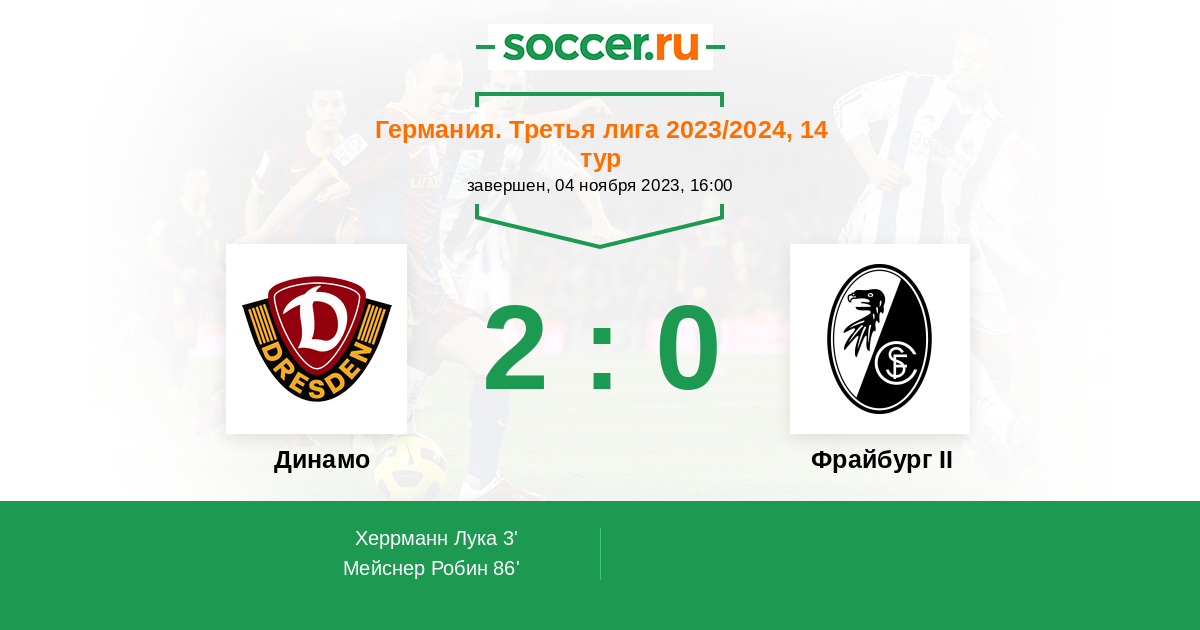 Протокол матча Динамо против Фрайбург II