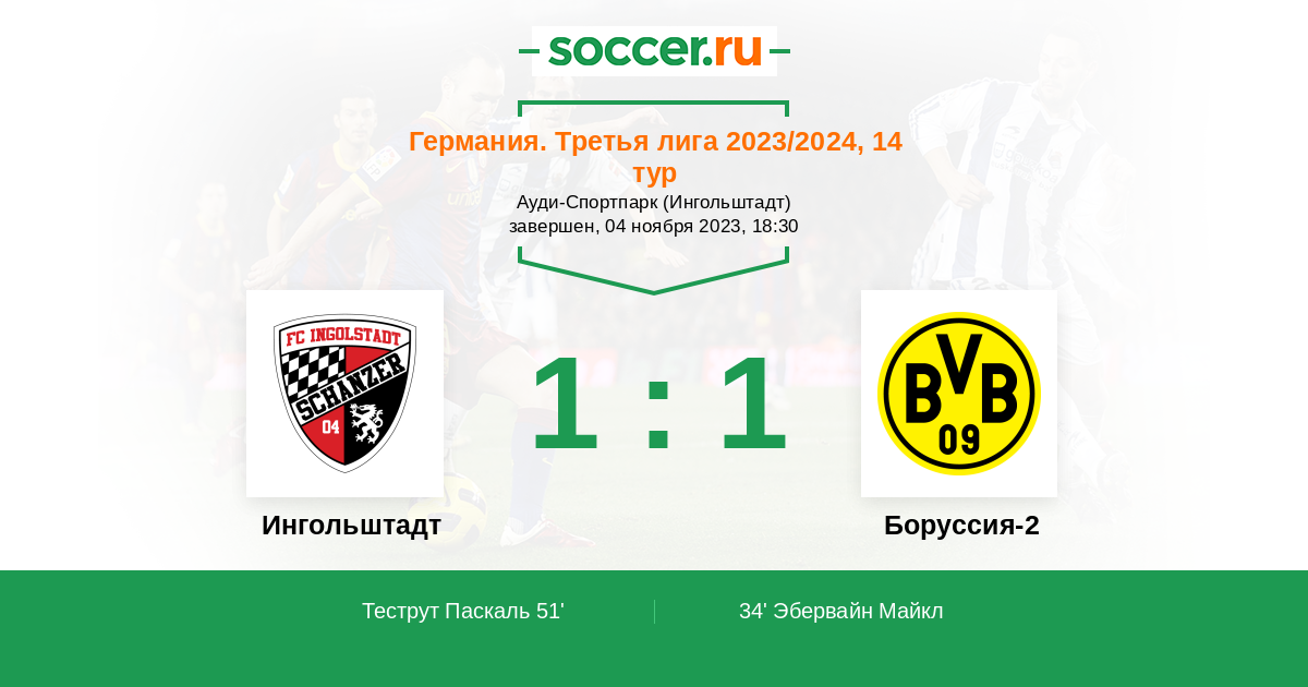 34' (0:1) Эбервайн Майкл (14) (Хеттвер Юлиан (20))