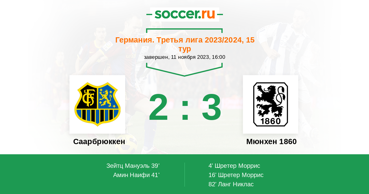 Протокол матча Саарбрюккен против Мюнхен 1860