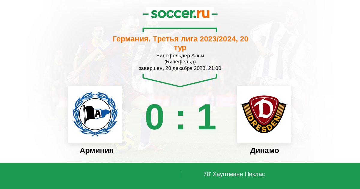 Протокол матча Арминия против Динамо