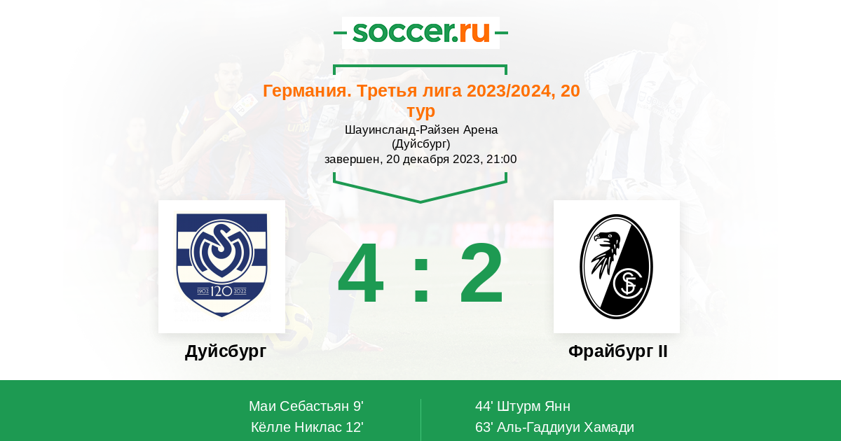 Протокол матча Дуйсбург против Фрайбург II
