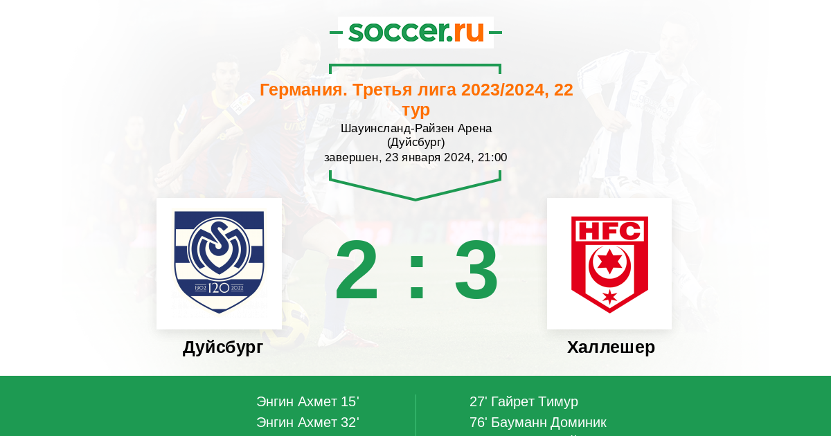 Протокол матча Дуйсбург против Халлешер