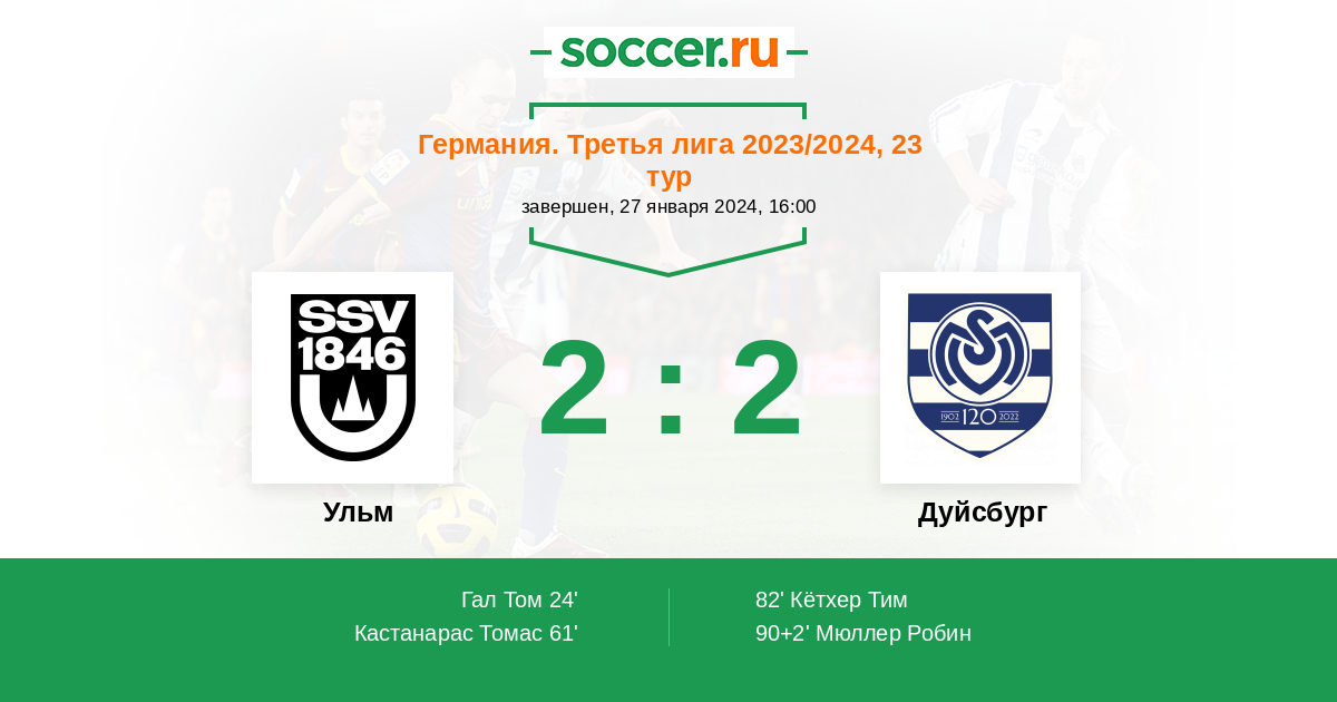 Протокол матча Ульм против Дуйсбург