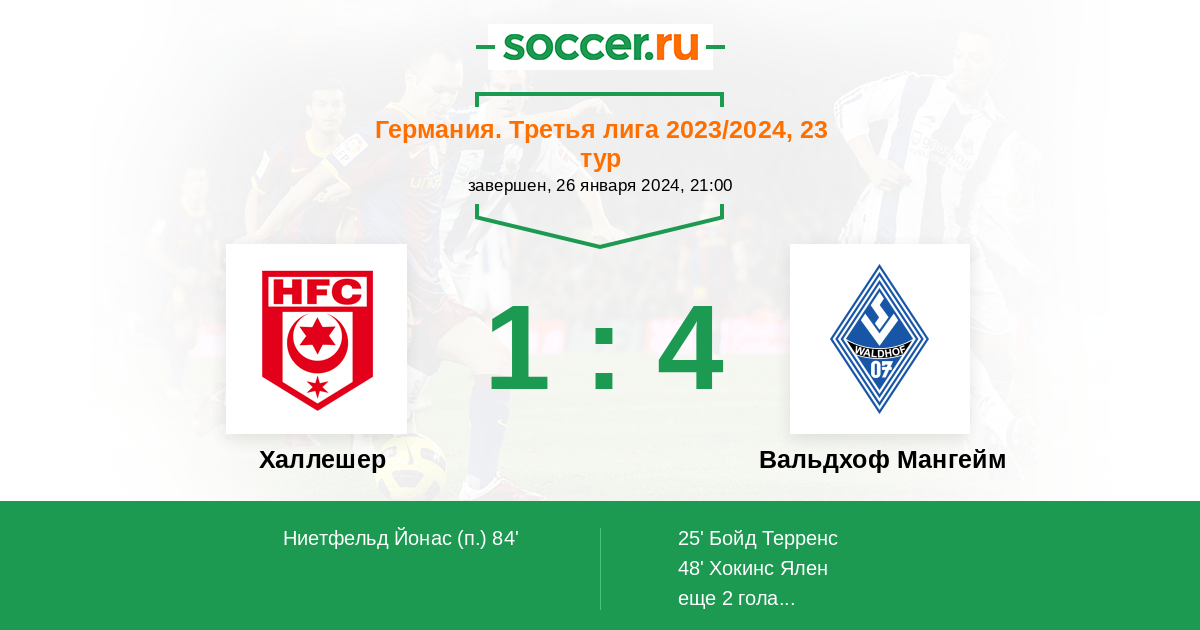 Протокол матча Халлешер против Вальдхоф Мангейм