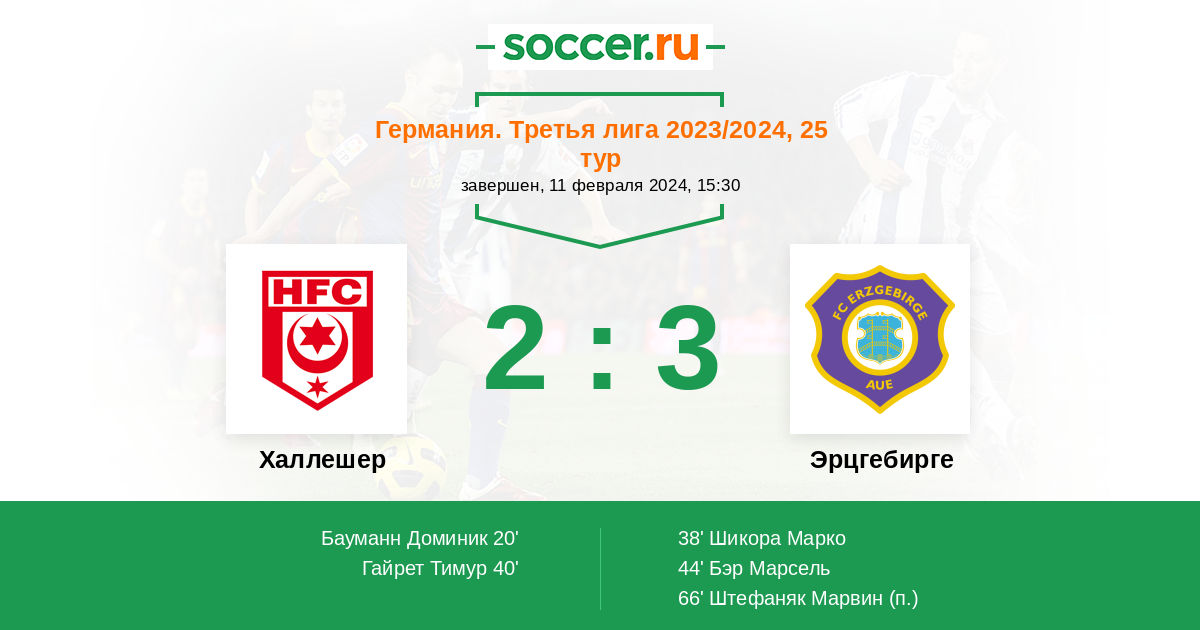 Протокол матча Халлешер против Эрцгебирге