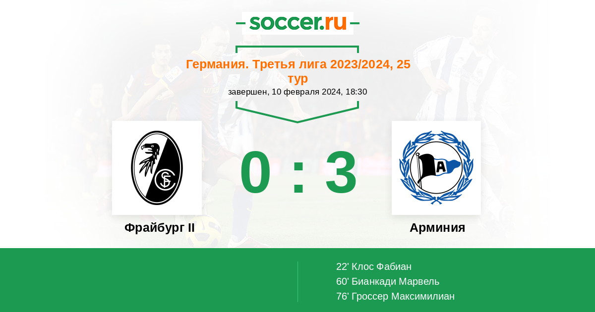 Протокол матча Фрайбург II против Арминия