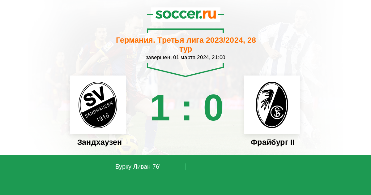 Протокол матча Зандхаузен против Фрайбург II