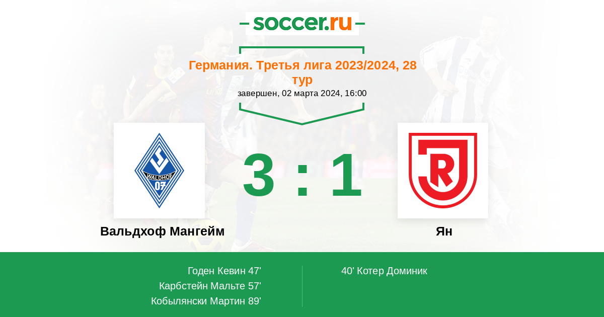 Протокол матча Вальдхоф Мангейм против Ян
