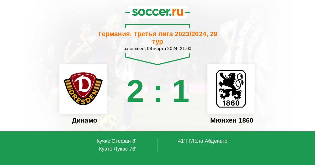 Протокол матча Динамо против Мюнхен 1860