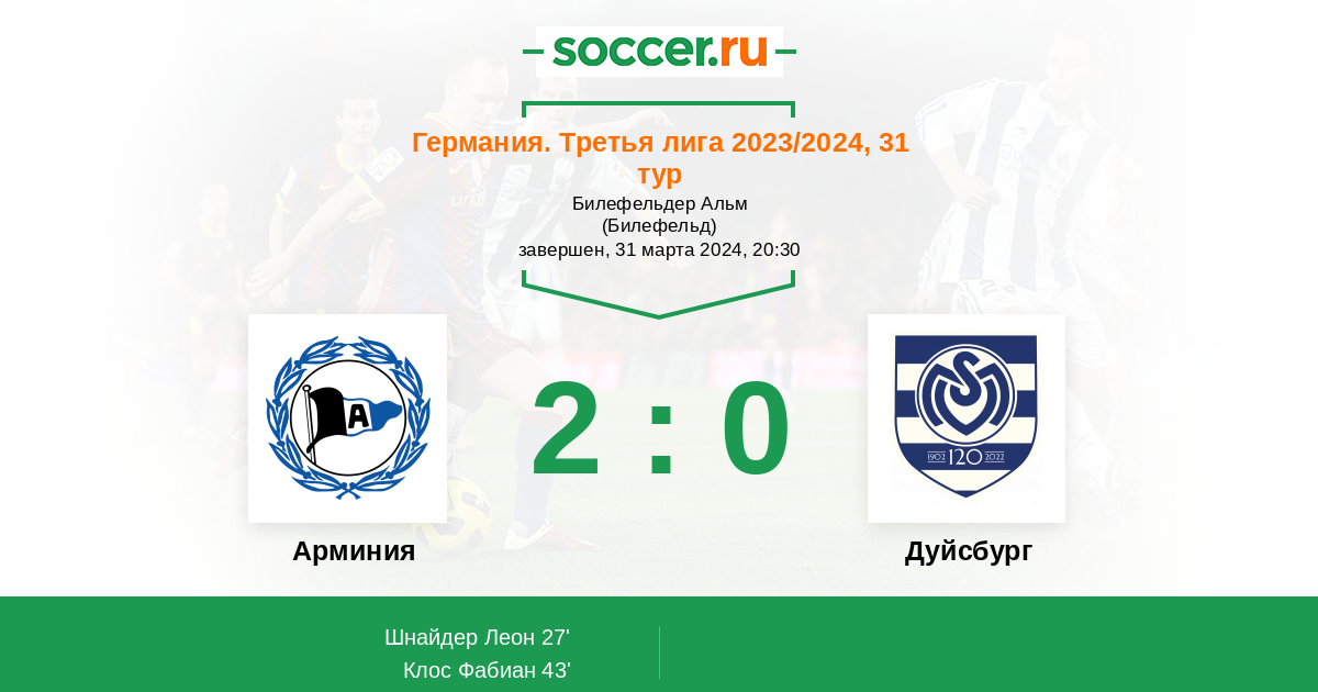 Протокол матча Арминия против Дуйсбург