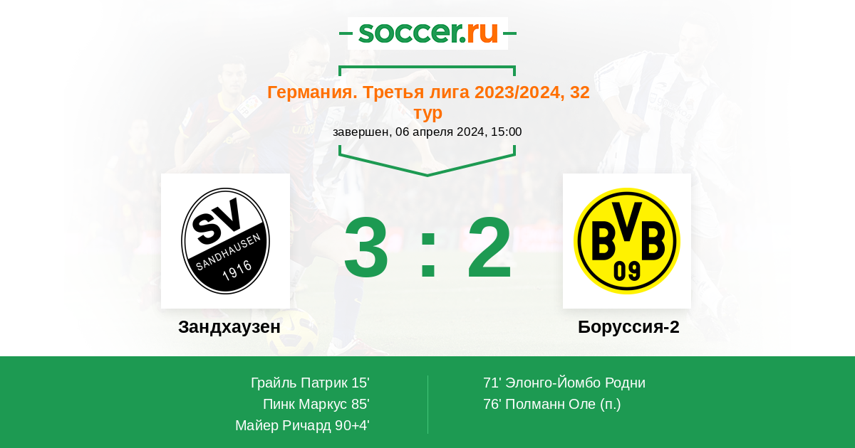 Протокол матча Зандхаузен против Боруссия-2