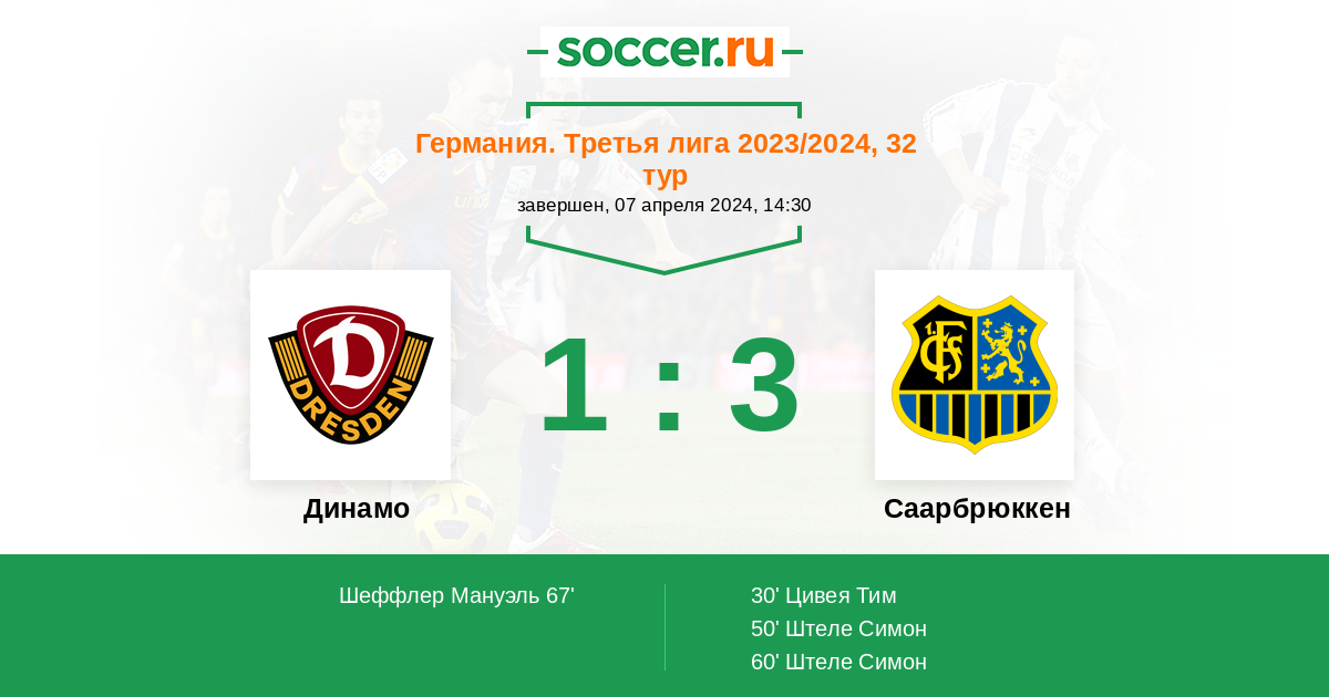 Протокол матча Динамо против Саарбрюккен