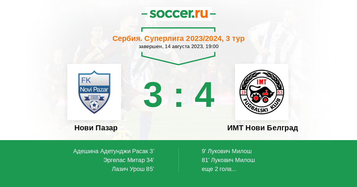 Протокол матча Нови Пазар против ИМТ Нови Белград