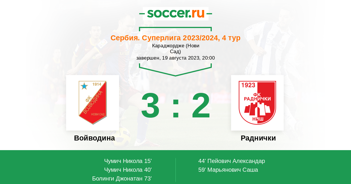 73' (3:2) Болинги Джонатан (19) (Николич Урош (20))