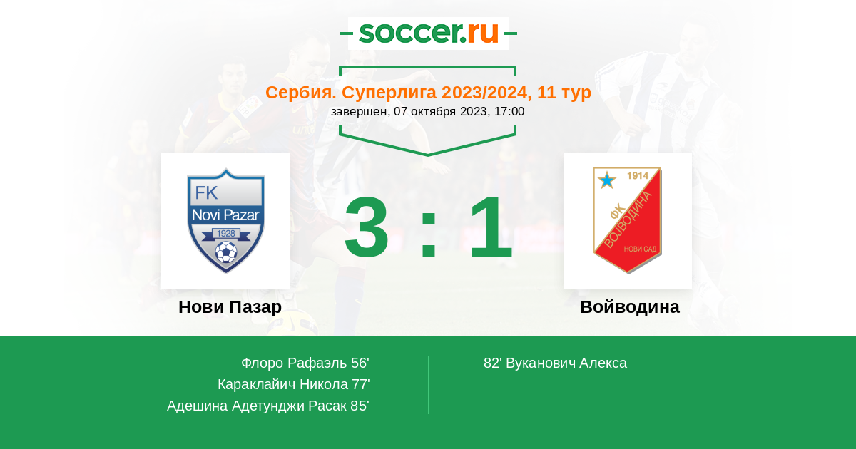 Протокол матча Нови Пазар против Войводина