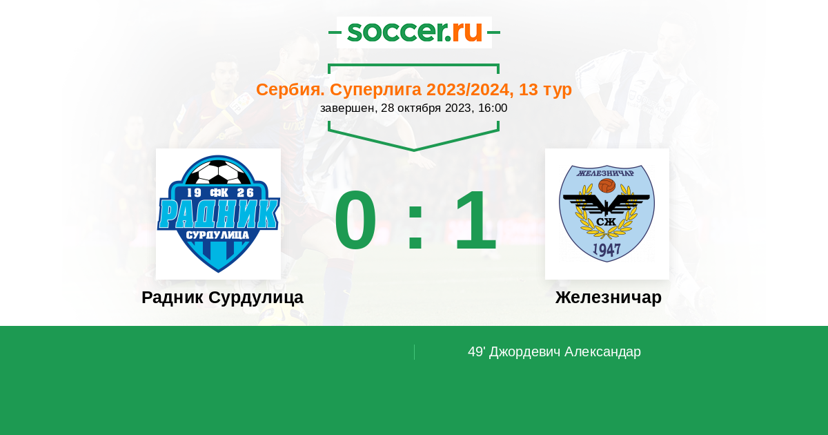 49' (0:1) Джордевич Александар (10) (Иван Лакичевич (33))