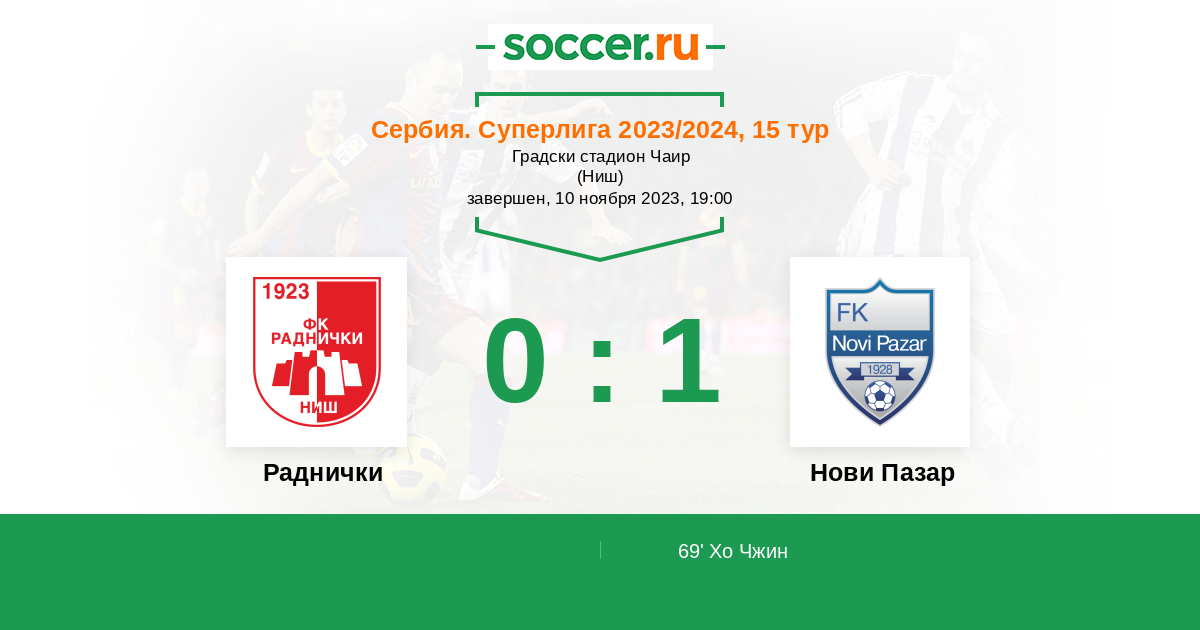 Протокол матча Раднички против Нови Пазар
