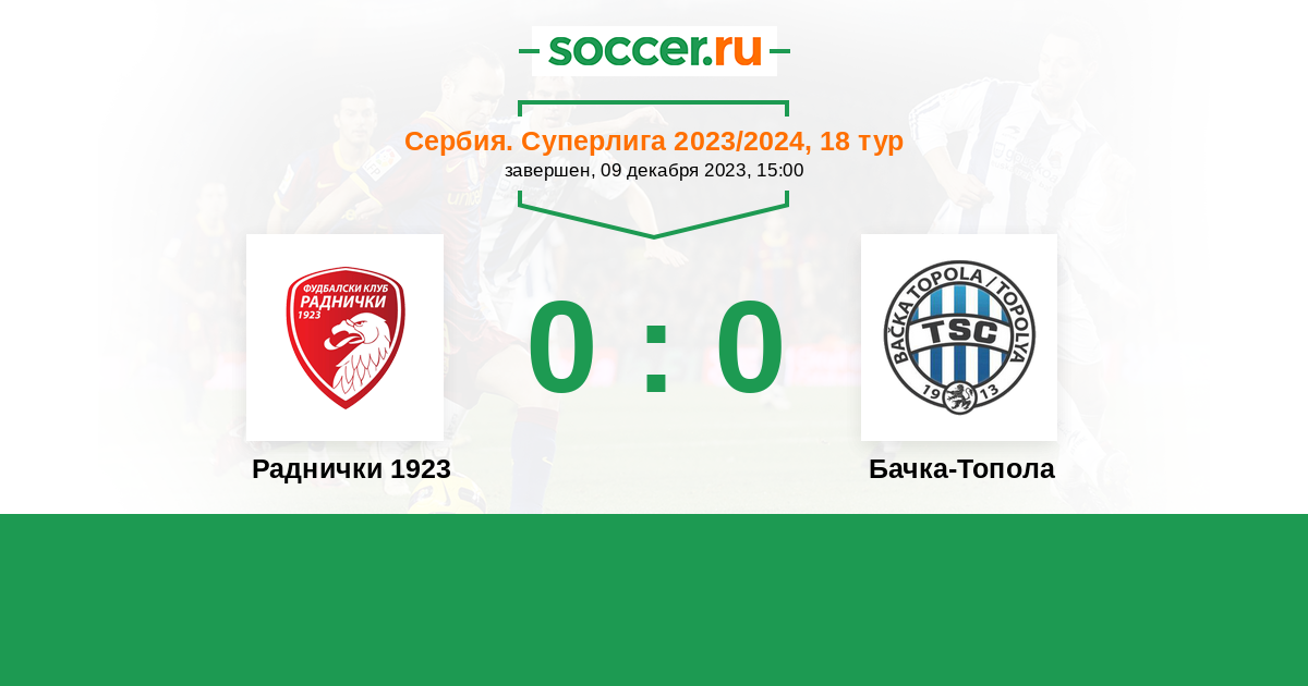Протокол матча Раднички 1923 против Бачка-Топола