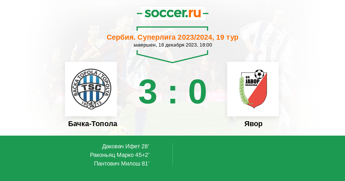 Протокол матча Бачка-Топола против Явор