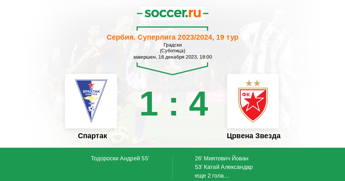 26' (0:1) Миятович Йован (22) (Неделькович Коста (2))