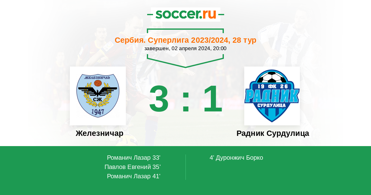 Протокол матча Железничар против Радник Сурдулица