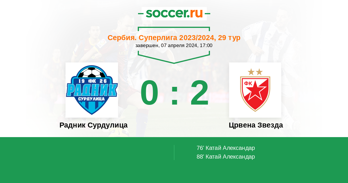 88' (0:2) Катай Александар (10) (Мияилович Срджан (33))