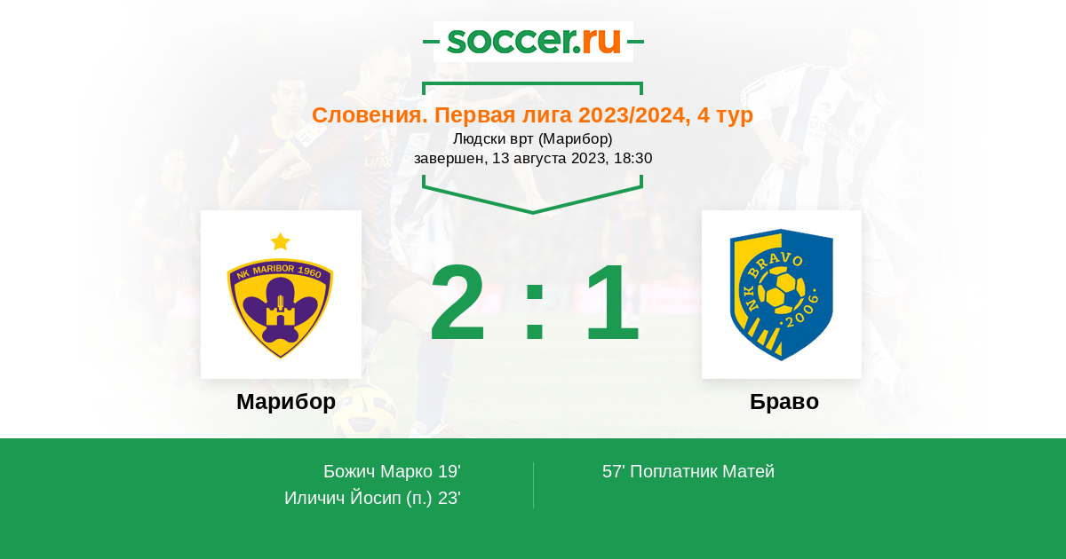Протокол матча Марибор против Браво