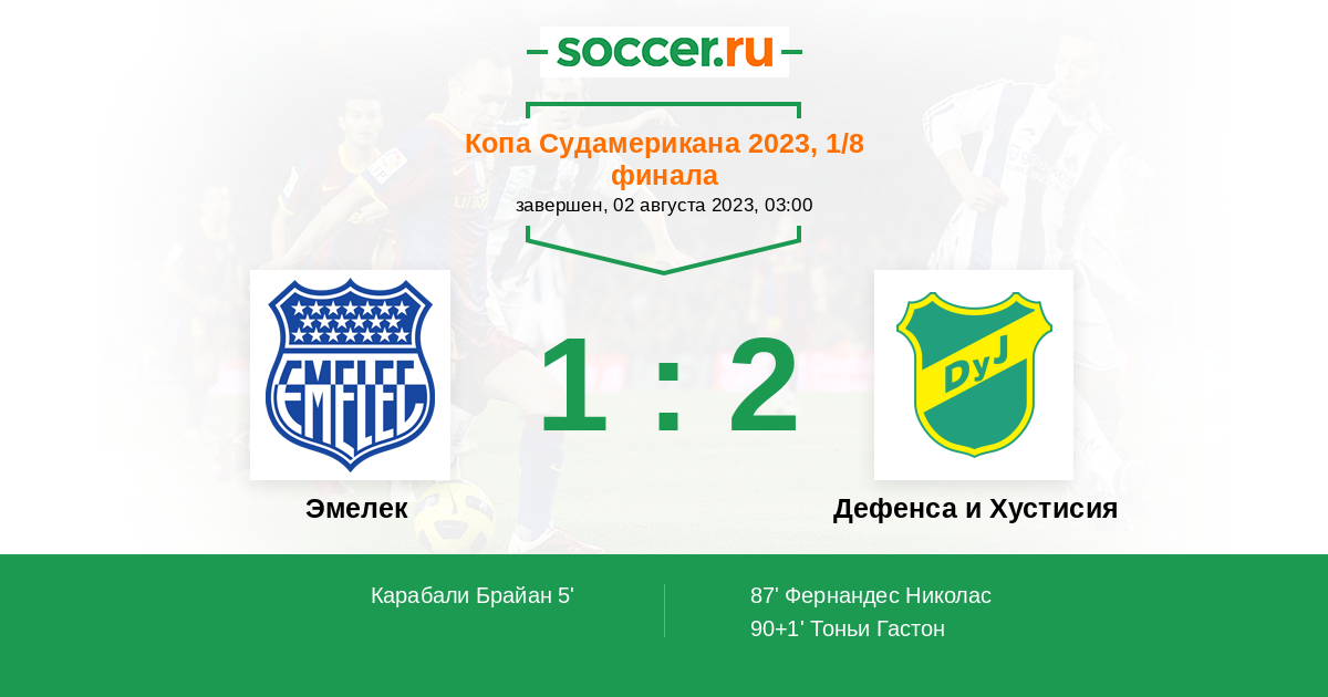Протокол матча Эмелек против Дефенса и Хустисия