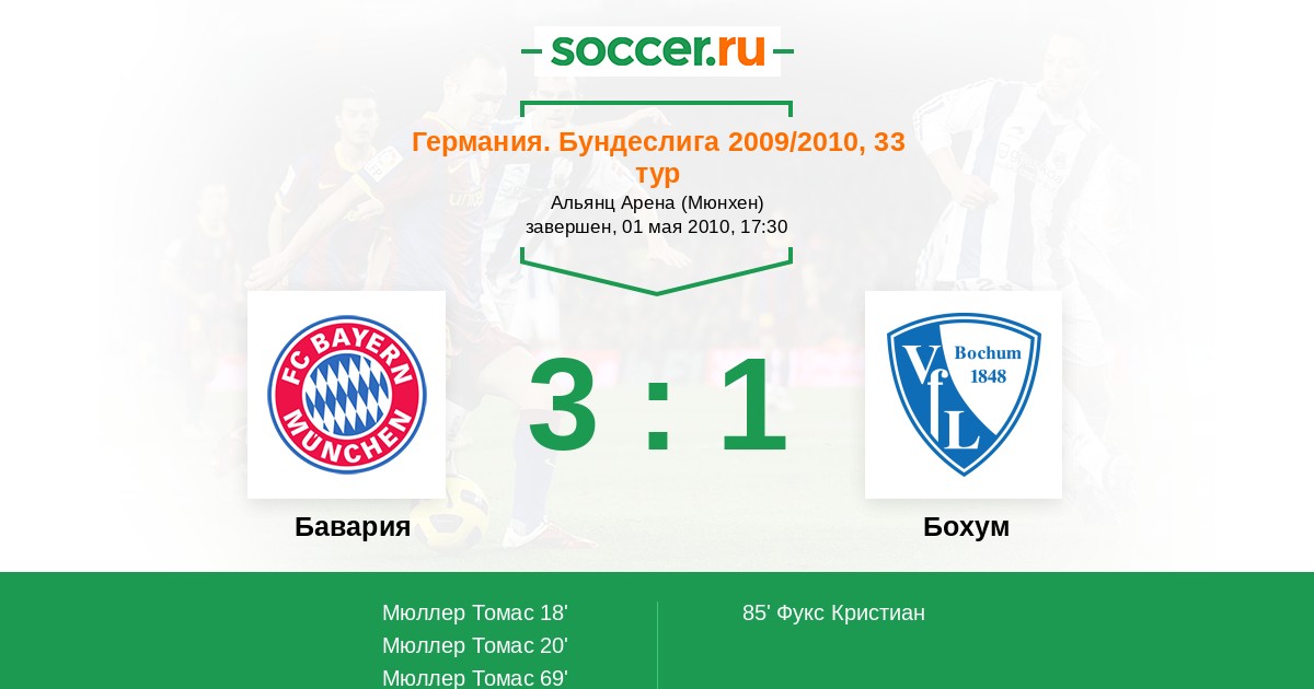 Протокол матча Бавария против Бохум