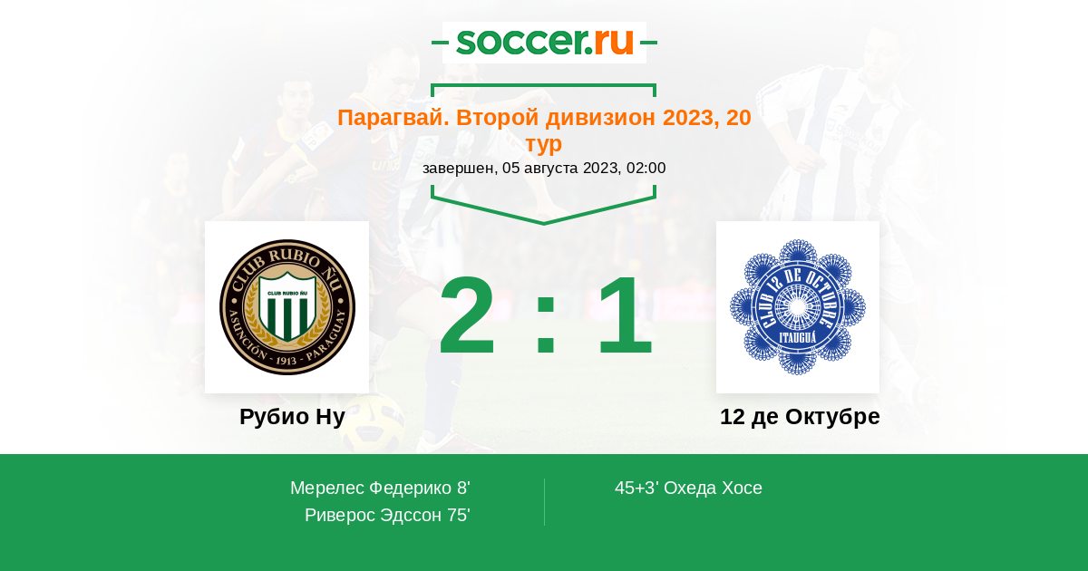 Протокол матча Рубио Ну против 12 де Октубре