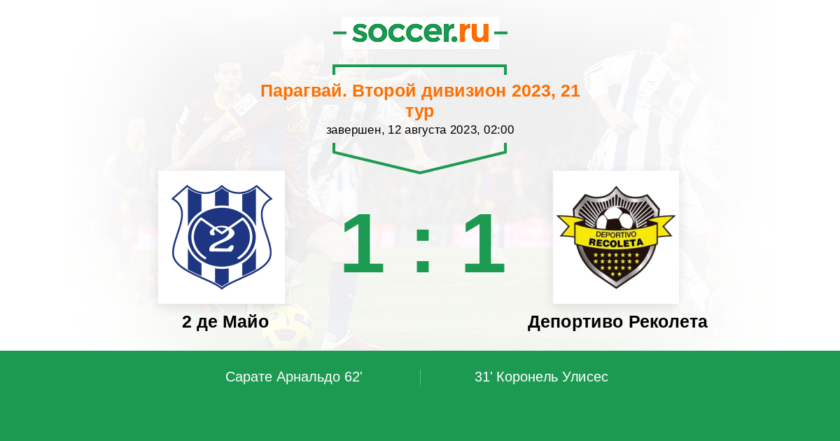 Протокол матча 2 де Майо против Депортиво Реколета