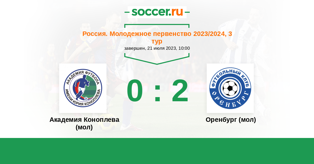 Матч Академия Коноплева (мол) против Оренбург (мол)