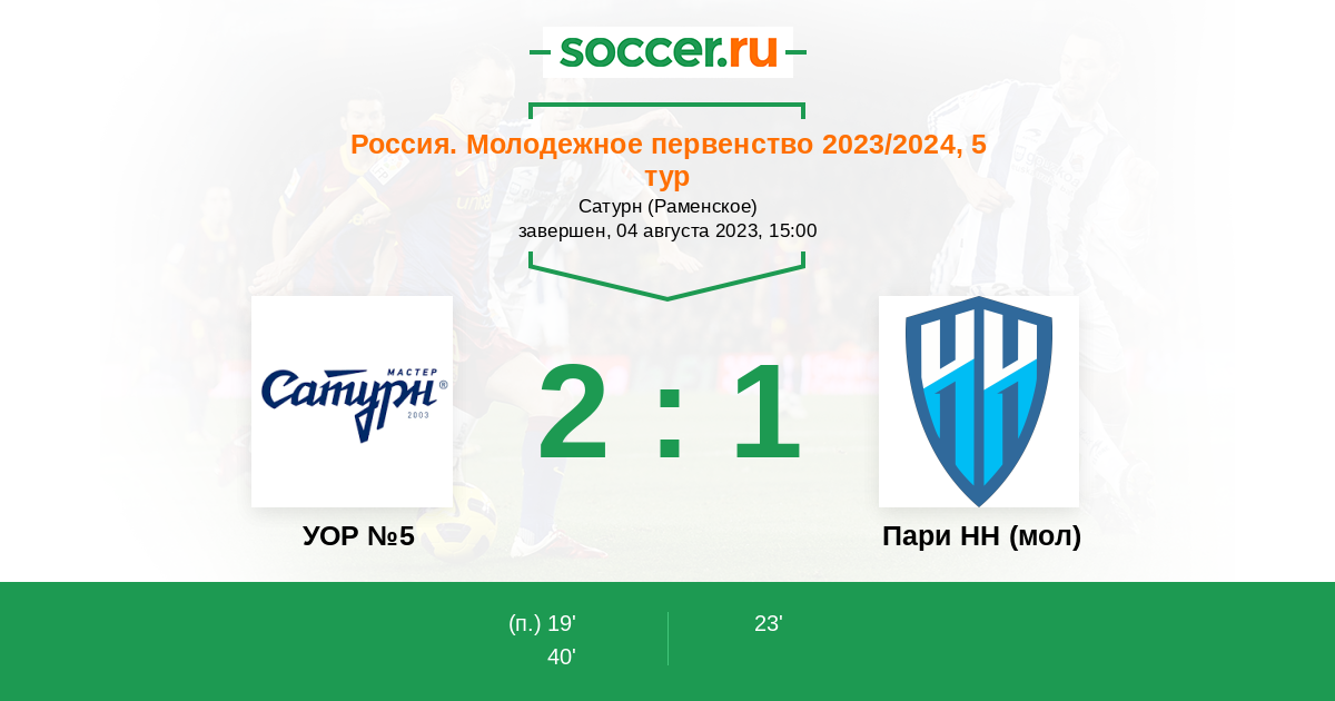 Протокол матча УОР №5 против Пари НН (мол)