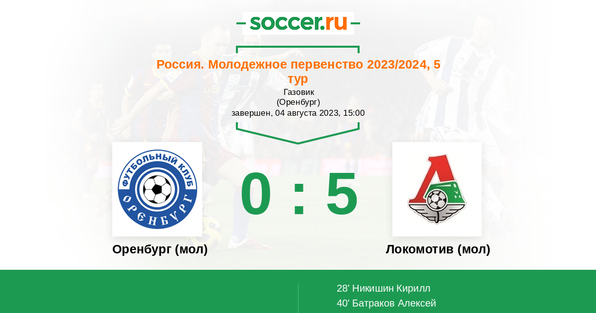 Протокол матча Оренбург (мол) против Локомотив (мол)