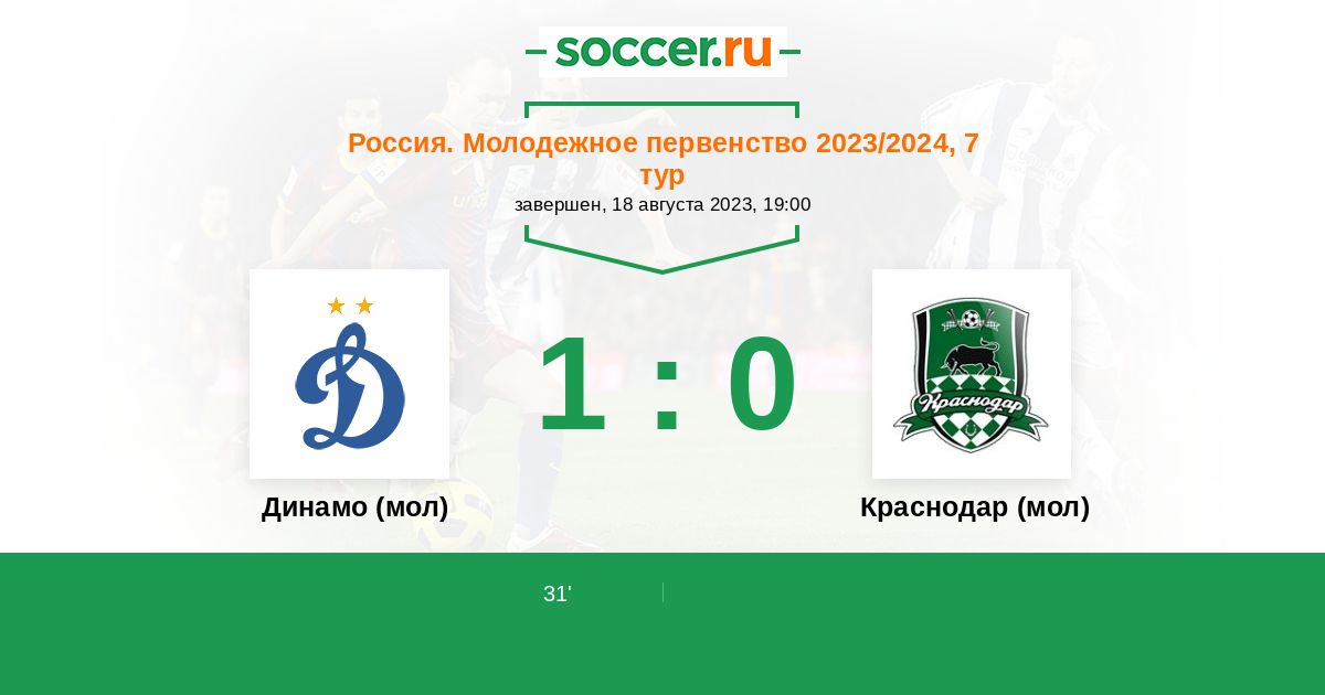 Протокол матча Динамо (мол) против Краснодар (мол)