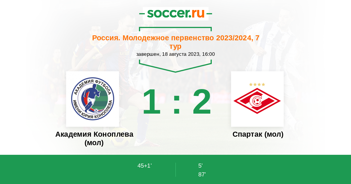 Протокол матча Академия Коноплева (мол) против Спартак (мол)
