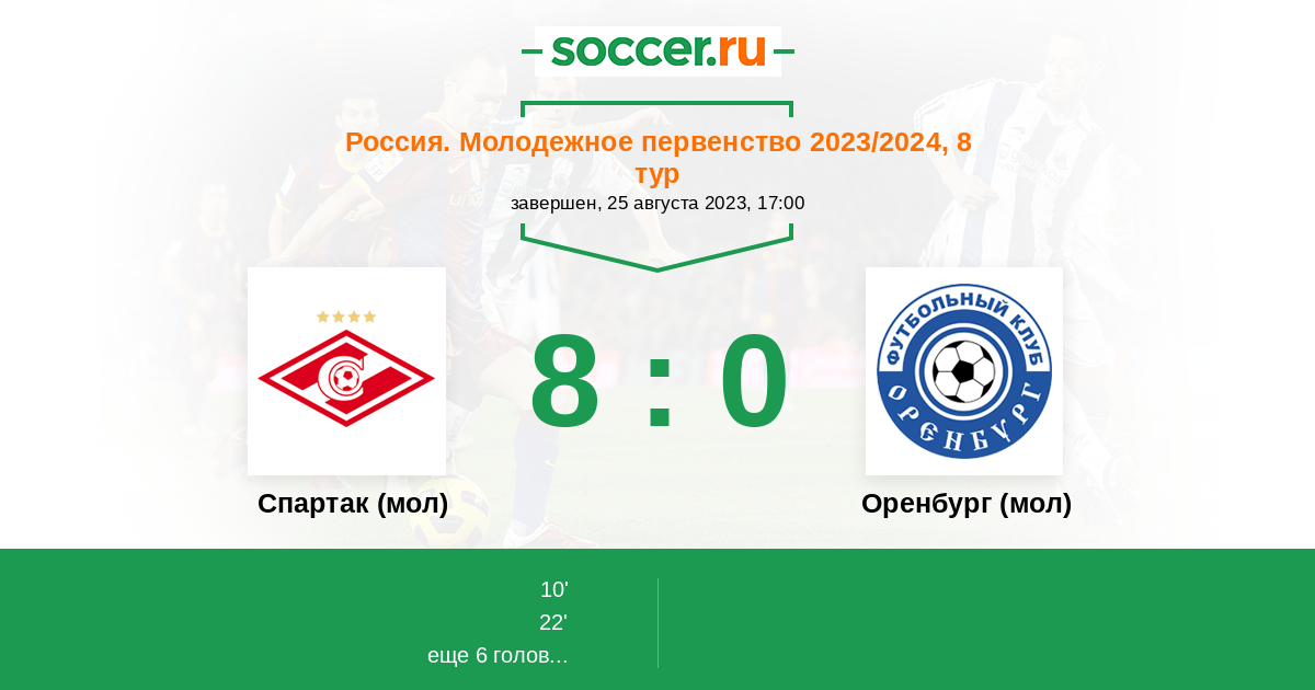 Протокол матча Спартак (мол) против Оренбург (мол)