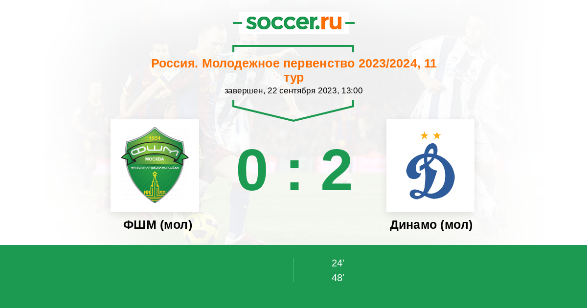 Протокол матча ФШМ (мол) против Динамо (мол)