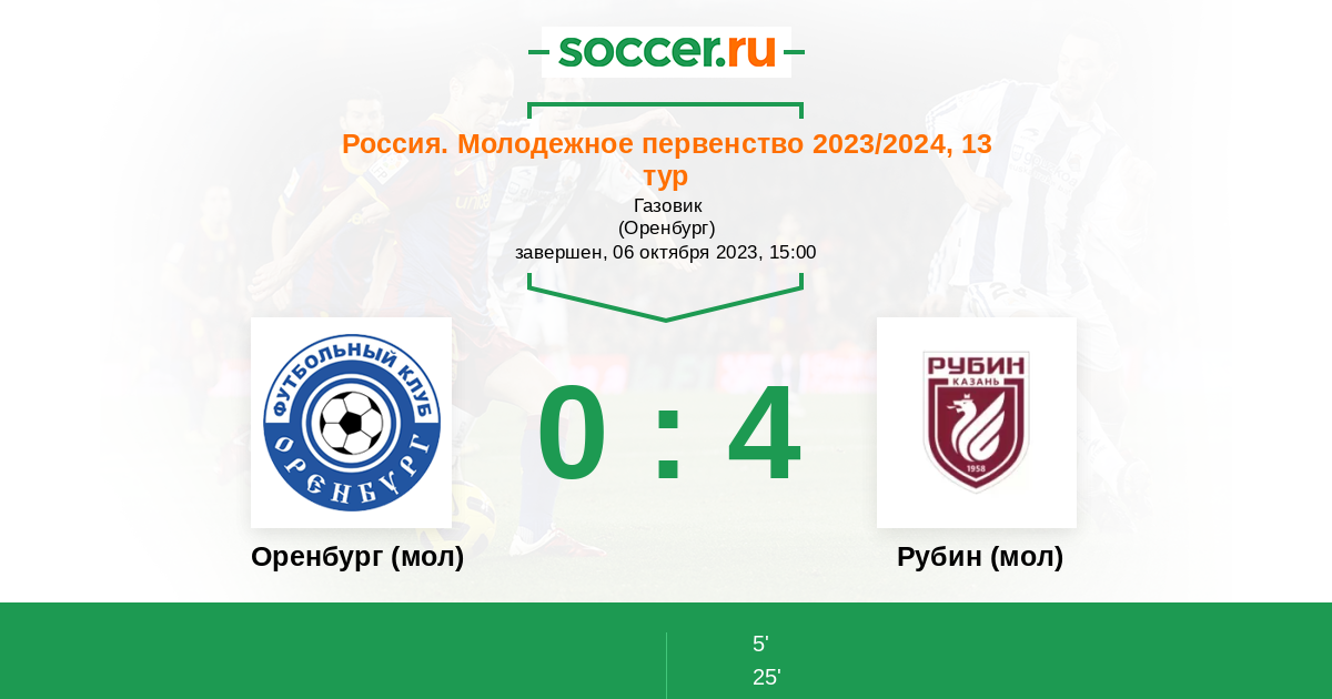 Протокол матча Оренбург (мол) против Рубин (мол)
