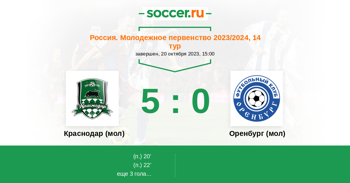Протокол матча Краснодар (мол) против Оренбург (мол)