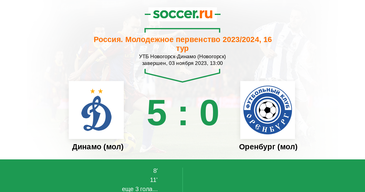 Протокол матча Динамо (мол) против Оренбург (мол)