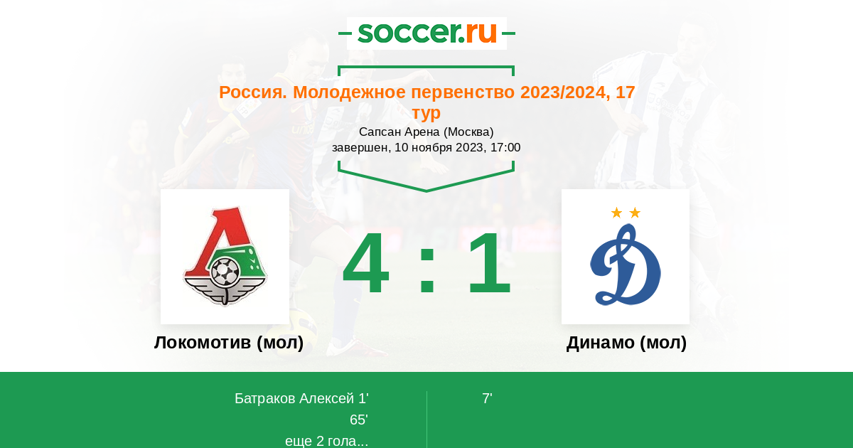 Протокол матча Локомотив (мол) против Динамо (мол)