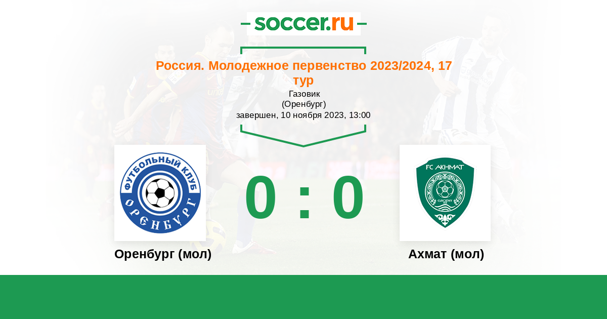 История матча Оренбург (мол) против Ахмат (мол)