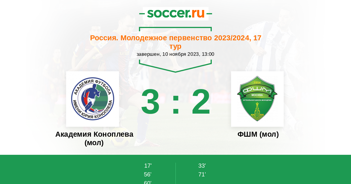 Протокол матча Академия Коноплева (мол) против ФШМ (мол)