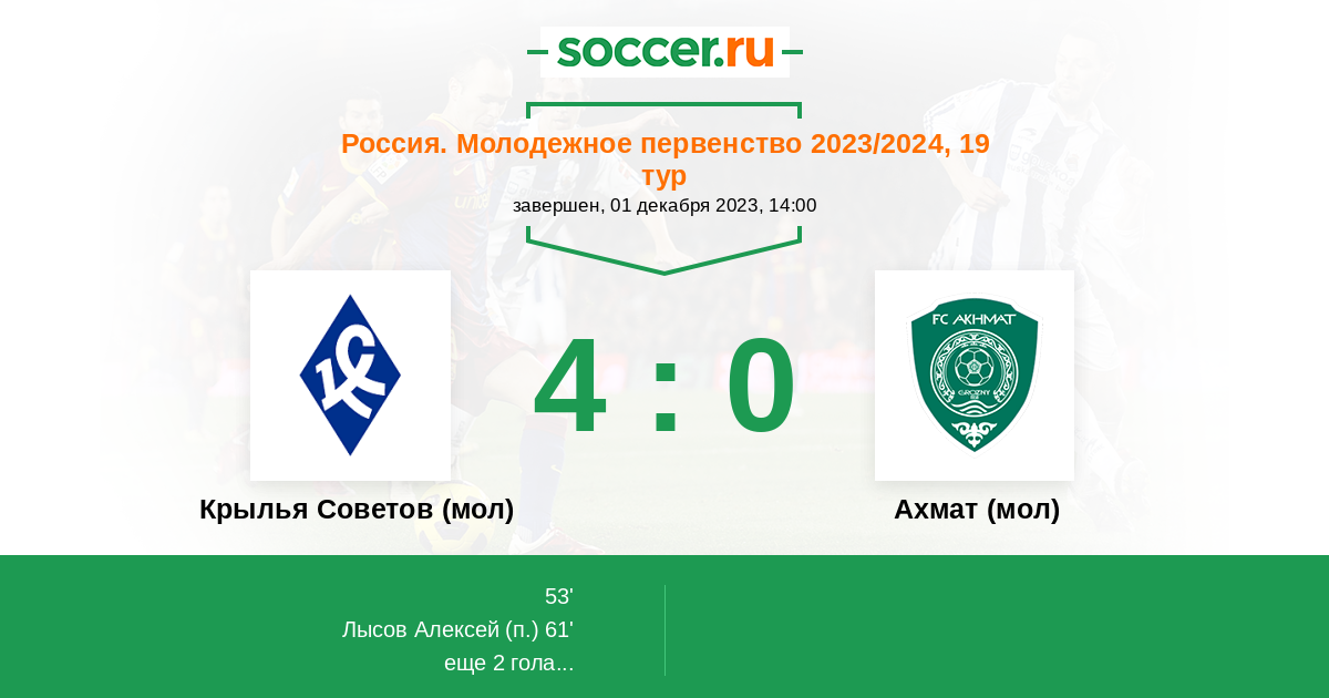 Протокол матча Крылья Советов (мол) против Ахмат (мол)