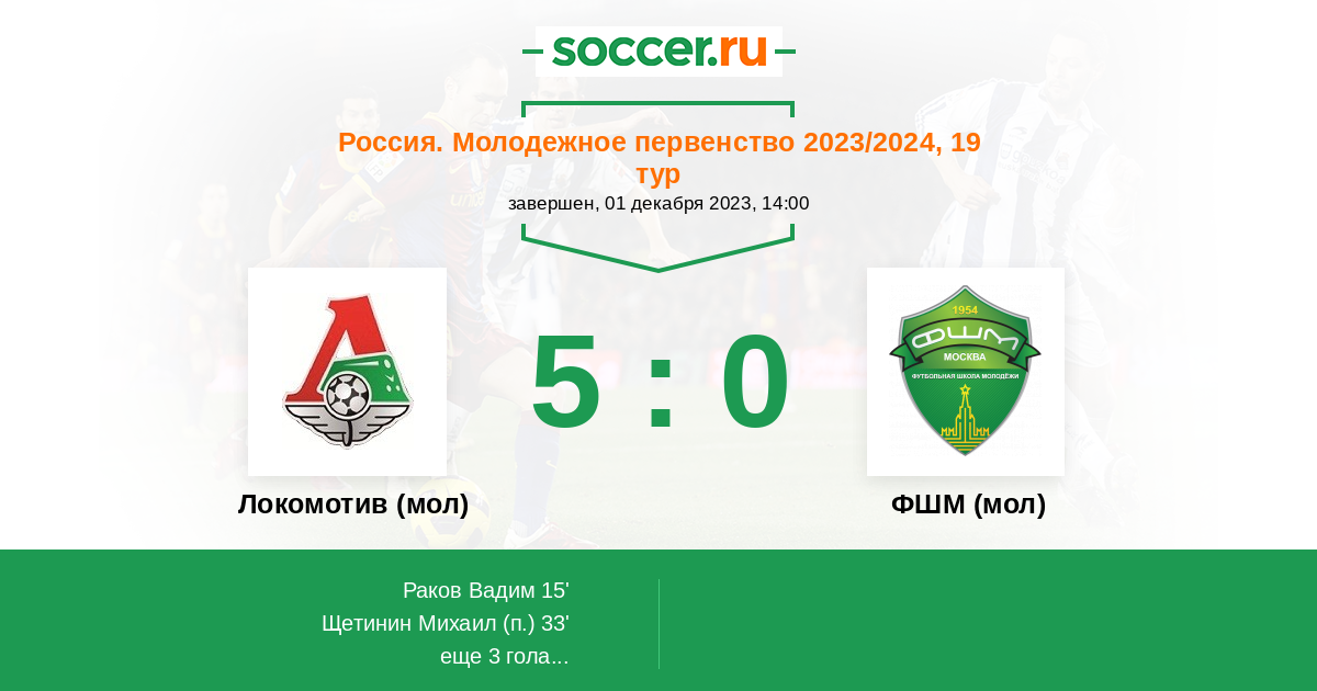 Протокол матча Локомотив (мол) против ФШМ (мол)