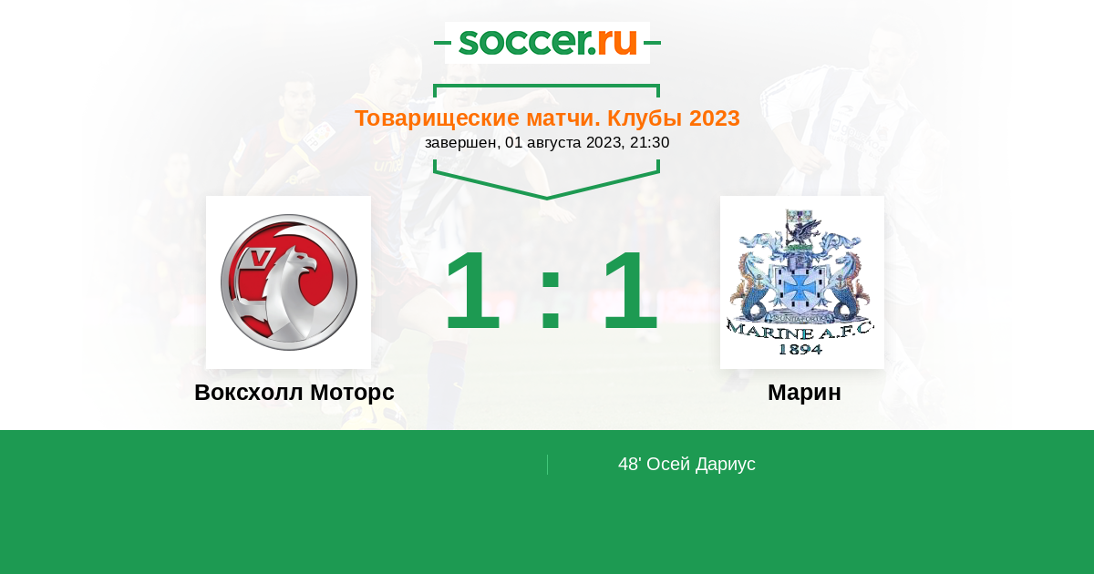 Протокол матча Воксхолл Моторс против Марин