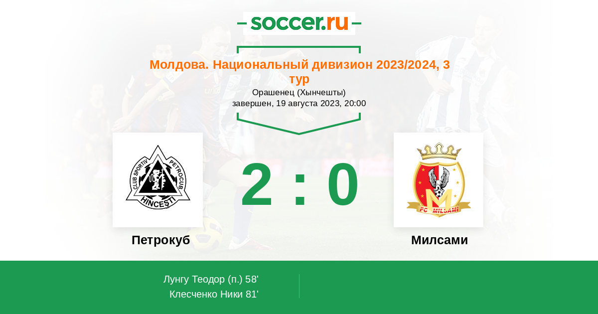 Протокол матча Петрокуб против Милсами