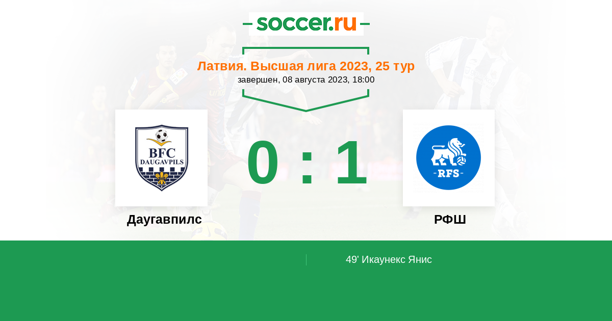 Протокол матча Даугавпилс против РФШ